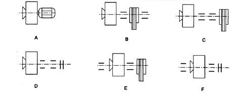 B、C、E式為皮帶傳動(dòng),D、F式為聯(lián)軸器傳動(dòng)。